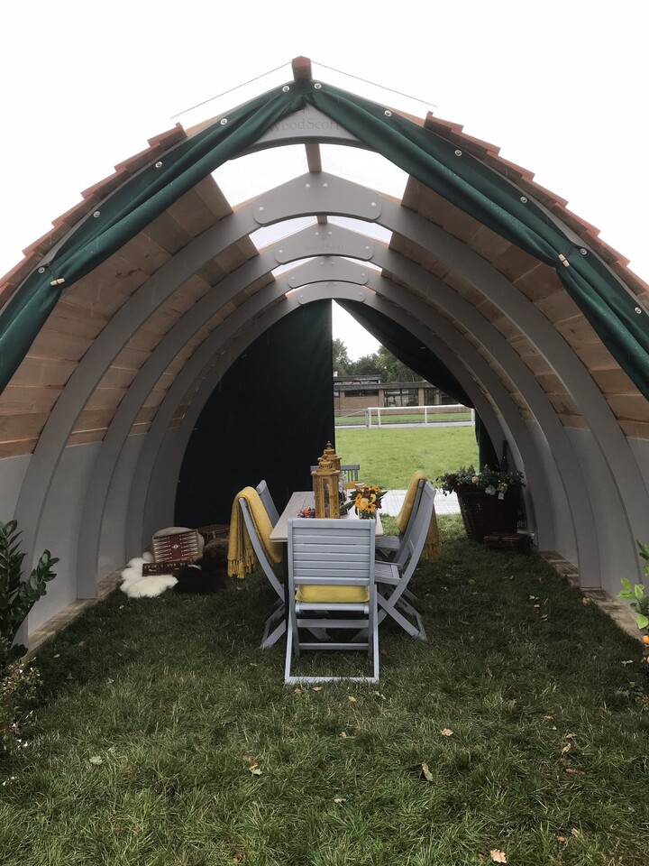 Whether the sun is beating down, or the grey clouds forming, you can be assured that our Glamping shelter will provide a glorious place of refuge for you and your guests. For BBQs, alfresco dining and social occasions—or even just a spot of stargazing with your family—a Glamping shelter is the smart choice!